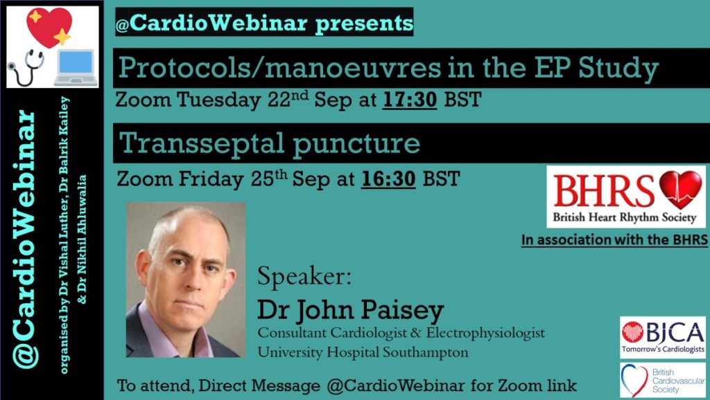 BHRS Council member, Dr John Paisey (Consultant Cardiologist & Electrophysiologist at University of Hospital Southampton) will be speaking at 2 webinars hosting by @CardioWebinar