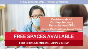 The BHRS have been offered 2 free spaces for the forthcoming Decisions about Cardiopulmonary Resuscitation conference which is taking place virtually on Friday 13 May 2022.  Applicants must be BHRS members and these spaces will be distributed on a first come, first served basis.