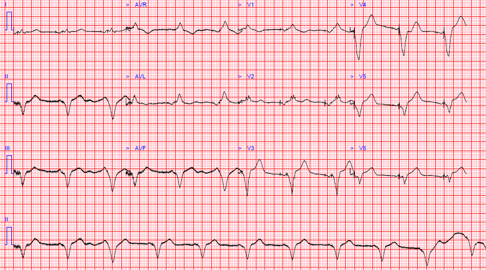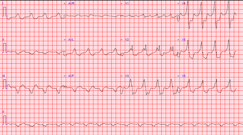 Figure 3 – 12-lead ECG showing Atrial Tachycardia and Slow Ventricular Tachycardia: Pre-DCCV