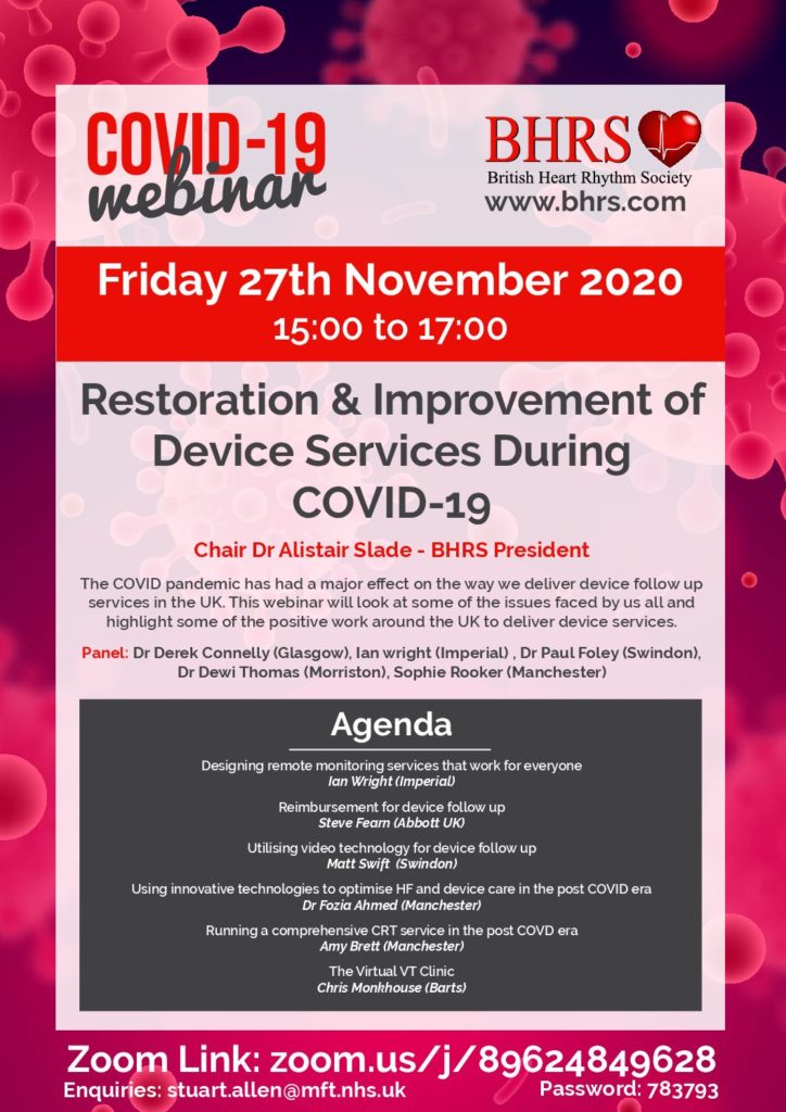 • Using innovative technologies to optimise HF and device care in the post COVID era – Dr Fozia Ahmed (Manchester)
